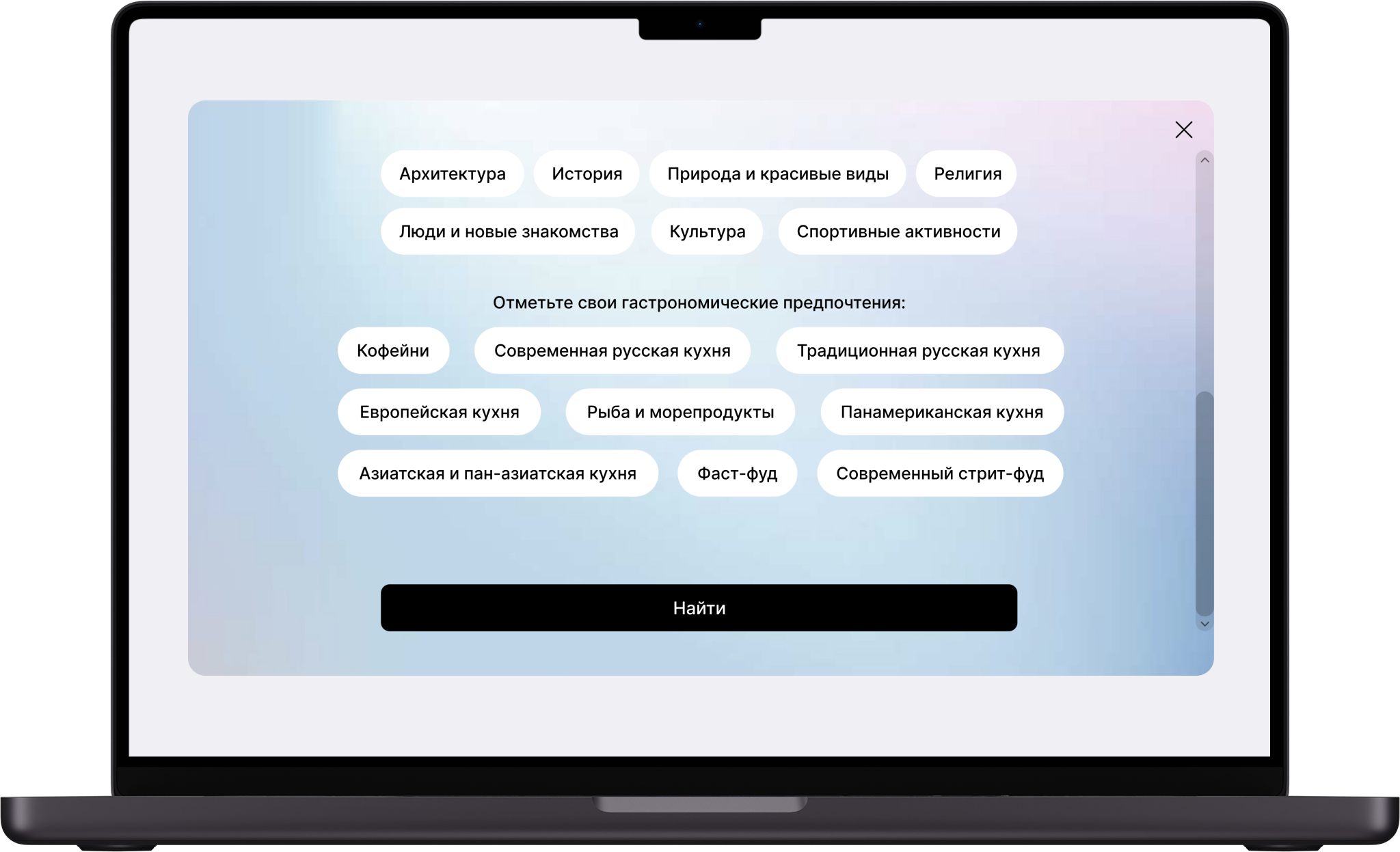 Проект представляет собой рекомендательный сервис с персональным подбором достопримечательностей