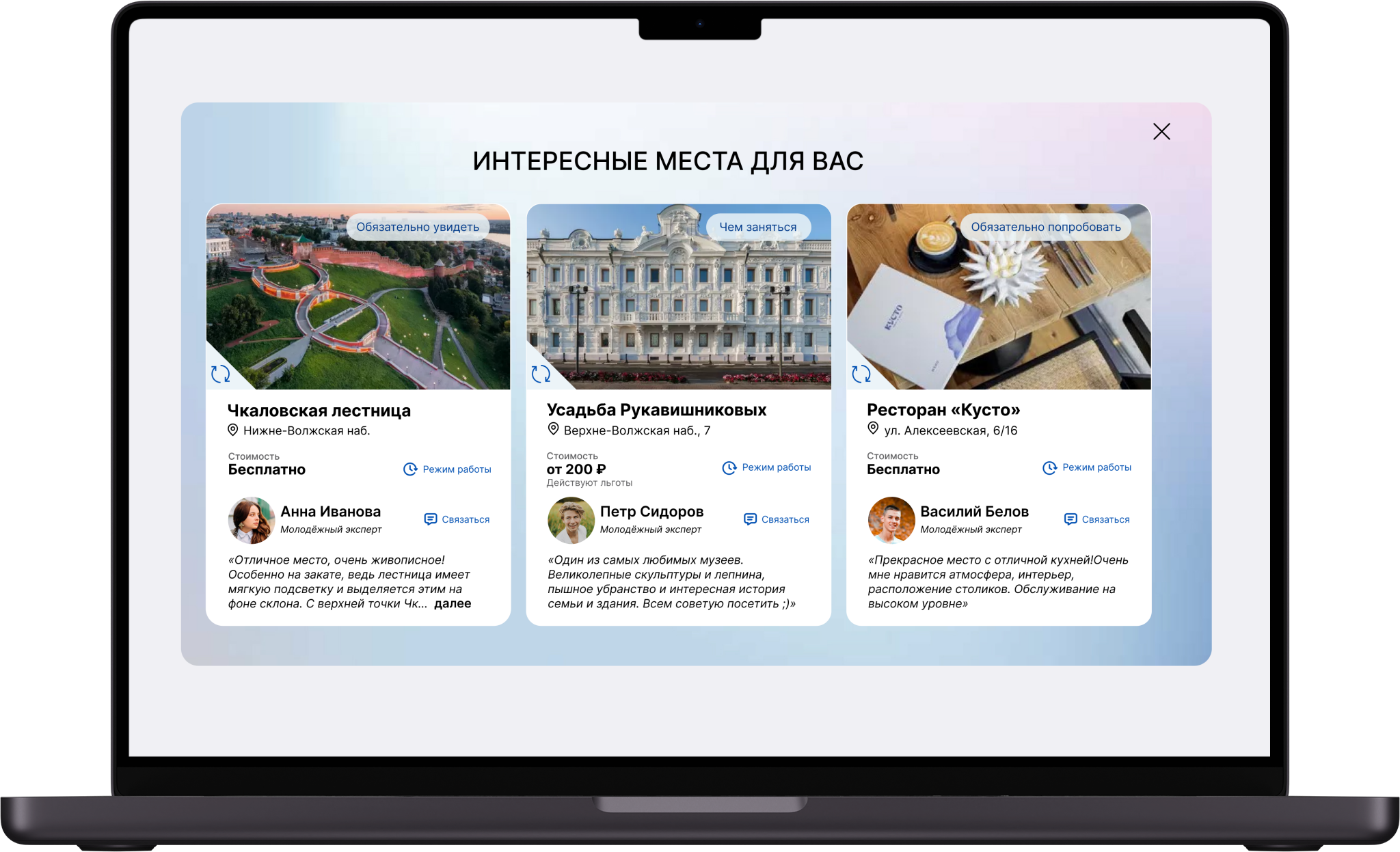 «Знакомьтесь, Нижний». Данный виджет предлагает особые рекомендации